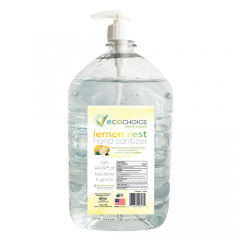 EcoChoice by Sterno Hand Sanitizer, 1 gallon, 70% ethyl alcohol, plant based formula, FDA registered gel formula, lemon zest scent, Made in USA (4 each per case) (Delivered Price, Freight may be added if minimum order requirement not met)