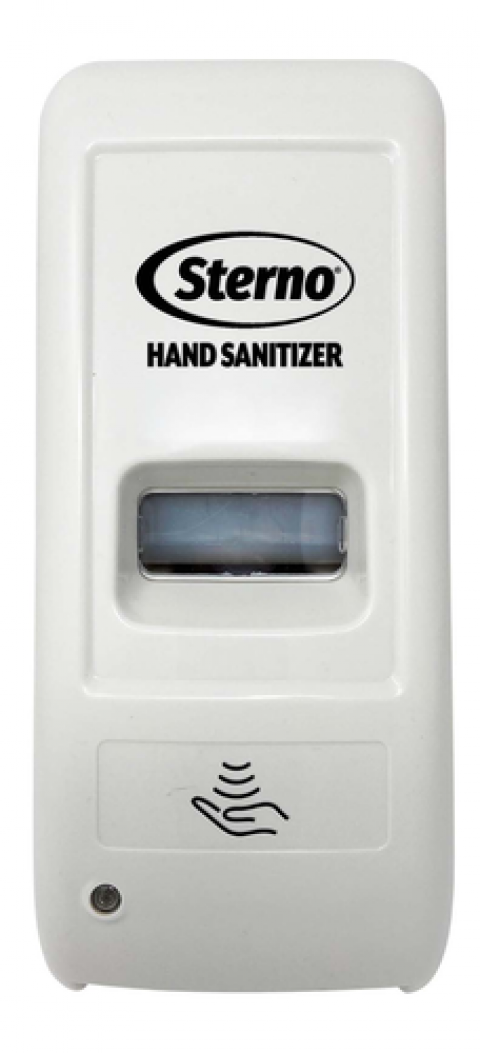Sterno® Hand Sanitizer Dispenser, 1000mL reservoir with clear view window, wall mount, automatic, touch-free activation, 1.5mL dose per pump, ABS plastic, white (keyhole slots and mounting screws included) (12 per case) (Delivered Price, freight may be added if minimum order requirement not met).