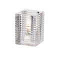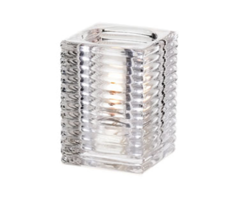 Classic Elegance Kelly Lamp, 4" H x 2-7/8" dia., square, horizontal ribbed design, glass, clear, should be used with: 8, 10, 12, 15, or 18 hour Soft Light® liquid wax candles (30500 & 30502 & 30504 & 30506 & 30508) or flameless rechargeable candle set, 6 each per case (Add freight - Collect unless otherwise noted)