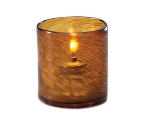 Industrial Chic Cognac Lamp, 3-1/4" H x 3" dia., swirl, glass, nutmeg, should be used with: 8, 10, or 12 hour Soft Light® liquid wax candles (30500 & 30502 & 30504) or flameless rechargeable candle set, 6 each per case (Add freight - Collect unless otherwise noted)