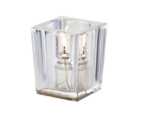 Classic Elegance Signature Lamp, 4" H x 3" dia., large, square, glass, clear, should be used with: 8, 10, 12, 15, or 18 hour Soft Light® liquid wax candles (30500 & 30502 & 30504 & 30506 & 30508) or flameless rechargeable candle set, 6 each per case (Add freight - Collect unless otherwise noted)