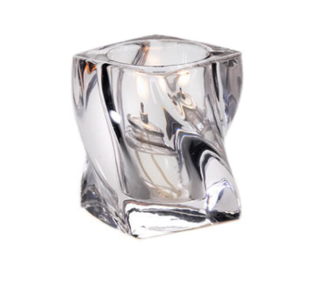 Classic Elegance Lennox Lamp, 4" H x 3-1/2" dia., twist design, glass, clear, should be used with: 8, 10, 12, 15, or 18 hour Soft Light® liquid wax candles (30500 & 30502 & 30504 & 30506 & 30508) or flameless rechargeable candle set, 6 each per case (Add freight - Collect unless otherwise noted)