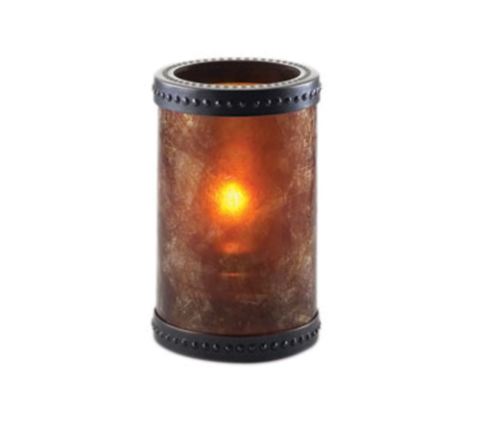 Industrial Chic Madison Lamp, 5" H x 3 1/8" dia., cylinder, round, with bronze accent rings, MICA, amber color, should be used with: 24, 30, 36, or 50 hour Soft Light® liquid wax candles (30510 & 30512 & 30514 & 30516) or flameless rechargeable candle set, 6 each per case (Add freight - Collect unless otherwise noted)