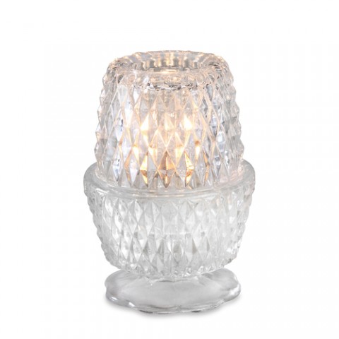 Vintage Charm Crawford Lamp, 5-1/14"H x 3-5/8" dia., with glass globe & base, clear, should be used with: 24, 30, or 36 hour Soft Light® liquid wax candles (30510 & 30512 & 30514) or flameless rechargeable candle set, 6 each per case (Add freight - Collect unless otherwise noted)