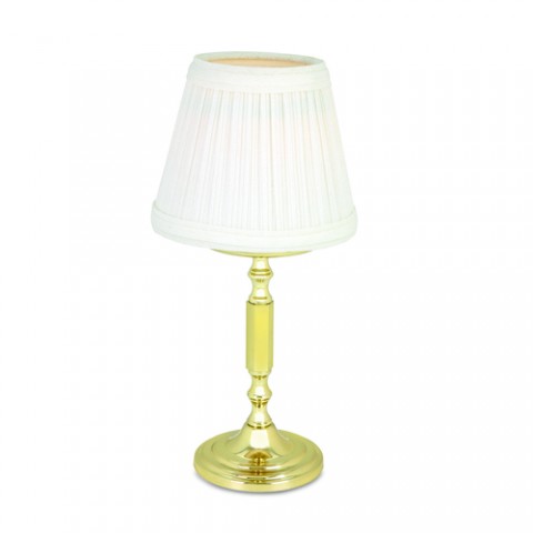 Vintage Charm La Rue Lamp, 10-1/2"H x 3-11/32" dia., marlowe white shade with polished brass base, should be used with: 15, 18, 24, or 30 hour Soft Light® liquid wax candles (30506 & 30508 & 30510 & 30512) or flameless rechargeable candle set, 6 each per case (Add freight - Collect unless otherwise noted)