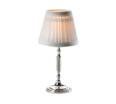 Vintage Charm La Rue Lamp Base, 6-1/2" H x 3-3/8" dia., silver, should be used with 30 hour Soft Light® liquid wax candles (30512), fits lamp shapes (85432, 85436) fits cylinder (85272), (6 each per case (Add freight - Collect unless otherwise noted)