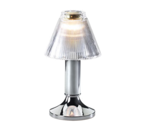 Vintage Charm Paige Lamp Base, 9-3/4" H x 4-1/4" dia., chrome, should be used with 29 hour Soft Light® liquid wax candles (30114), fits lamp shades (85442, 85446, & 85448), 6 each per case (Add freight - Collect unless otherwise noted)