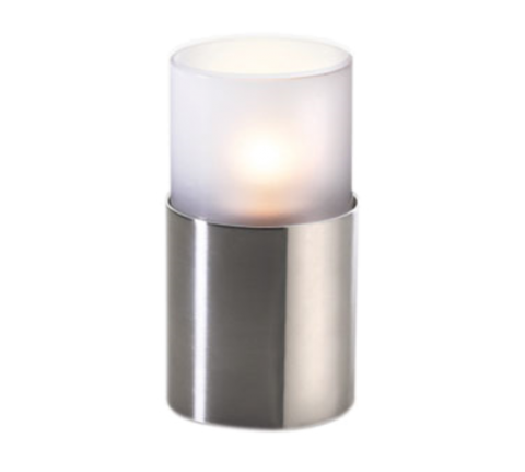 Industrial Chic Brooklynn Lamp Base, 3" H x 2-5/8" dia., satin nickel, should be used with 36 hour Soft Light® liquid wax candles (30514) or flameless candles, fits cylinders (85338), 6 each per case (Add freight - Collect unless otherwise noted)