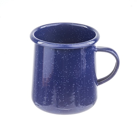 Mug, 16 oz., 4-3/4" x 3-5/8" x 4", enamel (vitreous porcelain), blue with white speckle (1 each minimum order)