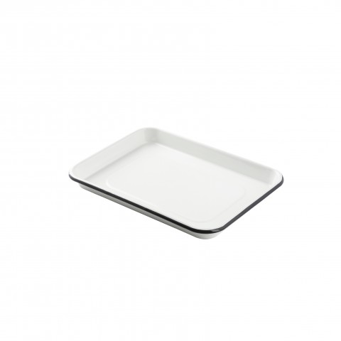 Sheet Pan, 1/4 size, 13" x 9-1/2" x 1-1/8", white with black rim, enamel (1 each minimum order)