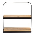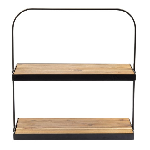 Display Stand, 17-3/10" x 8" x 18", two-tier, rectangular, collapsible, acacia wood, black powder coated metal frame (1 each minimum order)