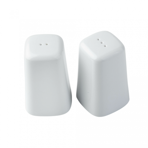 Salt & Pepper Shaker Set, 1-1/4 oz., 2mm holes, square, melamine, white (1 set minimum order)