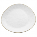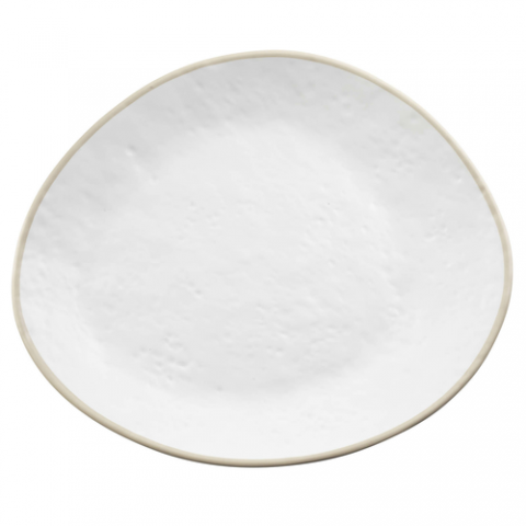 Europa Collection™ Plate, 13-1/4 x 11-1/8 x 1-1/4", freeform, temperature safe up to 212°F, dishwasher safe, white stone pattern with beige rim, melamine (1 each minimum order)