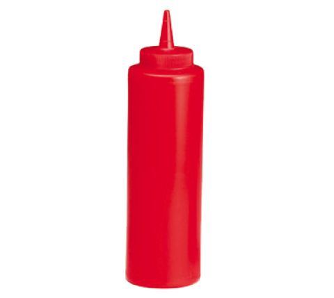 Squeeze Bottle, 12 oz., 38mm opening, ketchup, cone tip, dishwasher safe, soft polyethylene PerfectFlex™, red, Made in USA (must be purchased in multiples of 12 each)