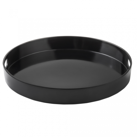 Serving Tray, 15" dia. x 2"H, round, dishwasher safe, melamine, black (1 each minimum order)