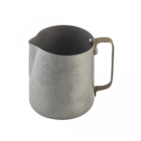 Frothing Cup, 18 oz., 5"x3.75"x4.25", stainless steel (200 Series), vintage finish, gold PVD finish handle (1 each minimum order)