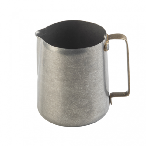 Frothing Cup, 24 oz., 5.25"x4.125"x4.75", stainless steel (200 Series), vintage finish, gold PVD finish handle (1 each minimum order)