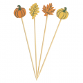 Decorative Picks, fall leaves & pumpkin (assorted), 5/8" x 1/4" x 4-1/2", bamboo (pack of 100) (must be purchased in multiples of 12 packs)