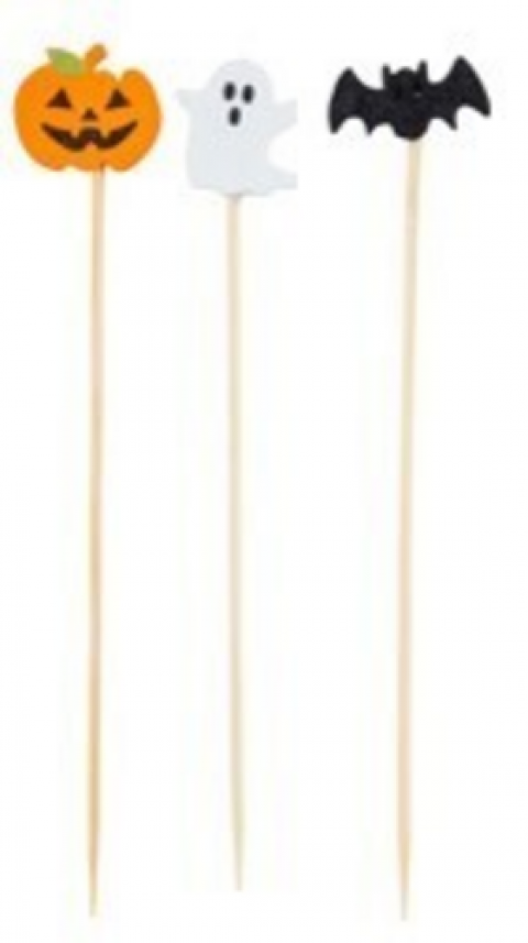 Decorative Picks, halloween (assorted: pumpkin, ghost & bat), 5/8" x 1/4" x 4-1/2", bamboo (pack of 100) (must be purchased in multiples of 12 packs)