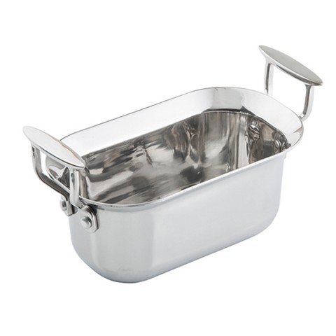 Tri-Ply Serving Pan, quarter size, 2 qt., 9" x 5-1/4" x 4", with handles, induction, dishwasher safe, 18/8 stainless steel interior, 18/0 stainless steel exterior, aluminum core, mirror finish, NSF (1 each minimum order)