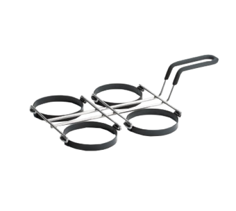 Egg Ring, 9-1/2" x 15-1/2" x 3-3/4", (4) 4" dia. x 5/8" non-stick egg rings, black cool-to-touch vinyl handle, dishwasher safe, nickel plated frame (1 each minimum order)