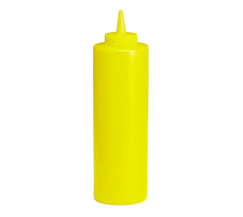 WideMouth™ Squeeze Bottle, 24 oz., 63mm opening, mustard, standard cone tip, dishwasher safe, soft polyethylene, yellow, Made in USA, NSF (must be purchased in multiples of 12 each)