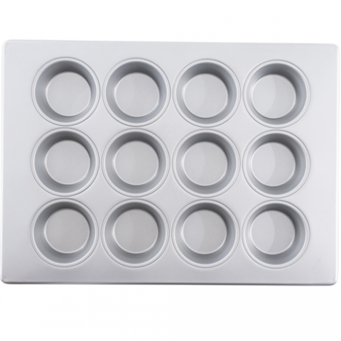 Large Muffin Pan, 18"x13"x1.25", steel (aluminized), 12 cups (3 rows of 4), silicone glazed non-stick coating (1 each minimum order), 4.25 oz capacity