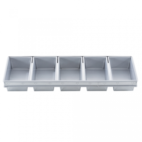 Bread Pan, 6-loaf strapped, 25.75" x 6" x 2.25", steel (aluminized), 5" x 3" x 2.75" pans, silicone glazed non-stick coating (1 each minimum order), 17 oz capacity