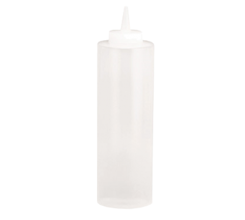 Squeeze Bottle, 24 oz., 38mm opening, natural cone tip, dishwasher safe, soft polyethylene PerfectFlex™, clear, Made in USA (must be purchased in multiples of 12 each)