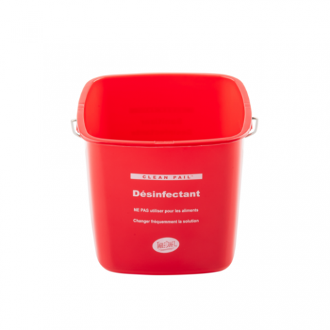 Cleaning Pail, 3 qt, 7" x 6.25" x 5.75", square, polyethylene (high density - HDPE), sanitizer, 2-sided white imprint, red (1 each minimum order)