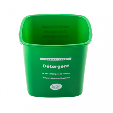 Cleaning Pail, 6 qt, 8.75" x 8.25" x 7.375", square, polyethylene (high density - HDPE), detergent, 2-sided white imprint, green (1 each minimum order)