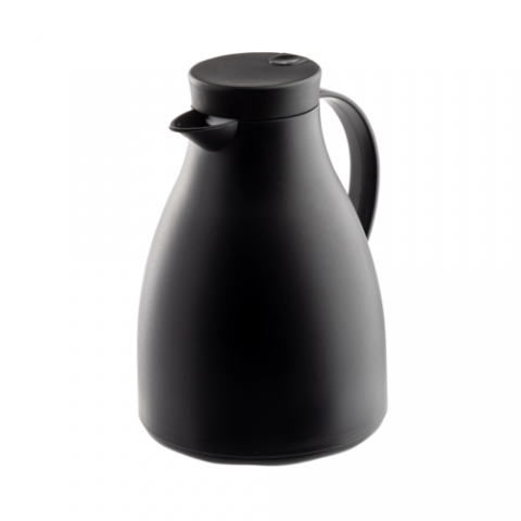 Cash & Carry Coffee Carafe, 50 oz., 7.75" x 6.75" x 10", with glass liner, frosted surface, vacuum insulated, polypropylene, plastic, black (1 each minimum order)