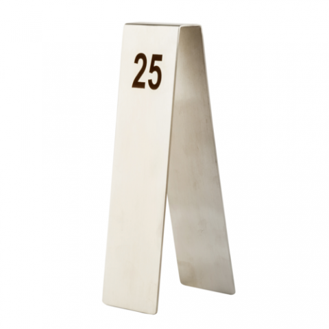 Number Tents, 2" x 2.75" x 6.75", 1-25, 200 Series stainless steel, silver (1 set minimum order)