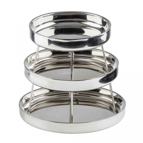Double Wall Seafood Tower, three-tier, oval, 14-1/4" x 9-1/2" x 12-1/4", mirror, 9-3/4", 11-3/4", & 13-3/4" oval bowls, stainless steel (200 Series) (1 each minimum order)