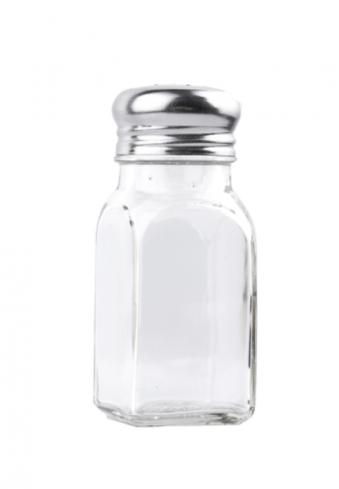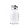 Salt & Pepper Shakers, 3 oz., 1-1/2" x 1-1/2" x 4", square, stainless steel top, glass, clear (must be purchased in multiples of 24 each)