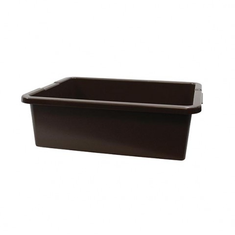 Tote Box, 21" x 17" x 7" O.A., reinforced handles, stackable, dishwasher safe, heavy duty, high density polyethylene, pebbled finish outside, brown, FDA approved, Made in USA, NSF (must be purchased in multiples of 6 each)