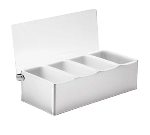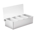 Condiment Holder, 1 pint, 12" x 5-3/4" x 3-1/2", (4) compartment holder, dishwasher safe, stainless steel with acrylic lid (1 each minimum order)