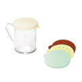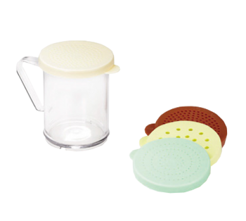 Dredge/Shaker Set, 10 oz., poly with handle & 1 each beige, rose & yellow snap tight plastic lids, dishwasher safe, Made in USA, BPA free (must be purchased in multiples of 12 sets)