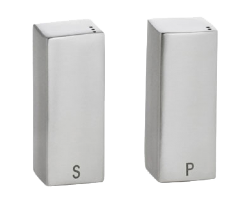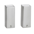 Salt/Pepper Shaker Set, 1-1/2 oz., 1-3/16" x 3-1/8"H, square, dishwasher safe, stainless steel (must be purchased in multiples of 6 sets)