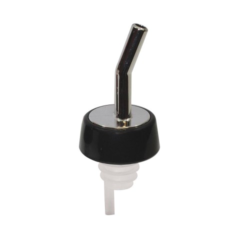 Cash & Carry Free Flow Whiskey Pourer, chrome plated spout, black collar, plastic, hand wash only, BPA free (packed 1 dozen per polybag) (must be purchased in multiples of 12 each)