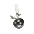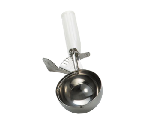 Cash & Carry Disher, size 6, 5 oz. capacity, 9.125" x 3.625" x 2", dishwasher safe, 18/8 stainless steel, white handle, NSF (individually boxed) (1 each minimum order)
