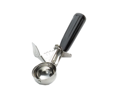 Cash & Carry Disher, size 30, 1-1/4 oz. capacity, 7.875" x 3.25" x 1.5", dishwasher safe, 18/8 stainless steel, black handle, NSF (individually boxed) (1 each minimum order)