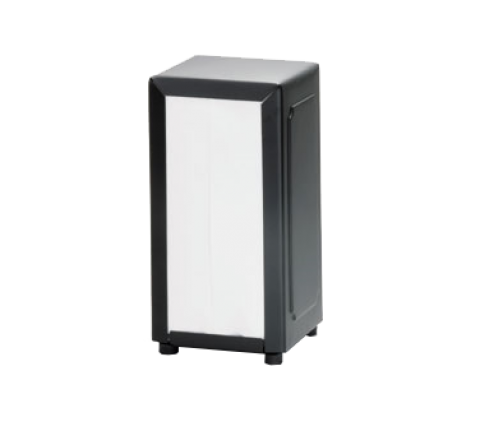 Napkin Dispenser, 4-1/4" x 3-3/4" x 7-1/2", fits 3-3/8" x 6-5/8" napkins, full size, double sided, hand wash only, stainless steel, black (must be purchased in multiples of 24 each)