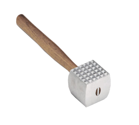 Meat Tenderizer, 13" x 2-3/4" x 3", double sided (coarse and fine), hand wash only, cast aluminum, wood handle (1 each minimum order)