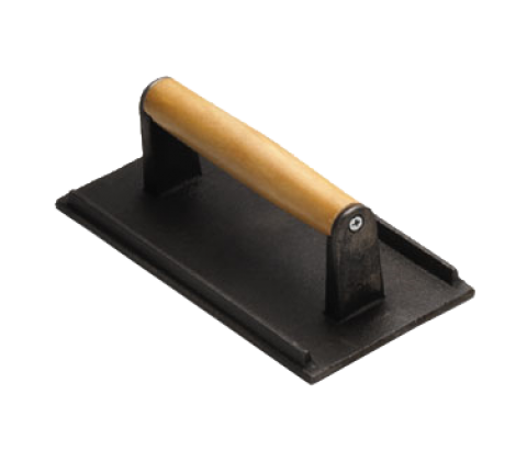 Steak Weight, 8-1/4" x 4-1/4" x 2-1/2", hand wash only, cast iron, wood handle (1 each minimum order)