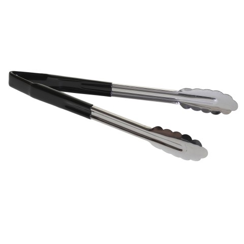 Tongs, 12", one piece, vinyl-coated, spring steel construction, dishwasher safe, black (1 each minimum order)