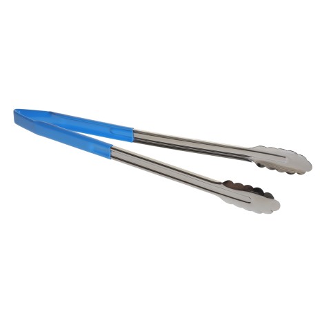 Tongs, 16", one piece, vinyl-coated, spring steel construction, dishwasher safe, blue (1 each minimum order)