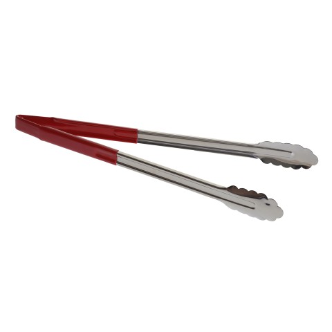 Tongs, 16", one piece, vinyl-coated, spring steel construction, dishwasher safe, red (1 each minimum order)