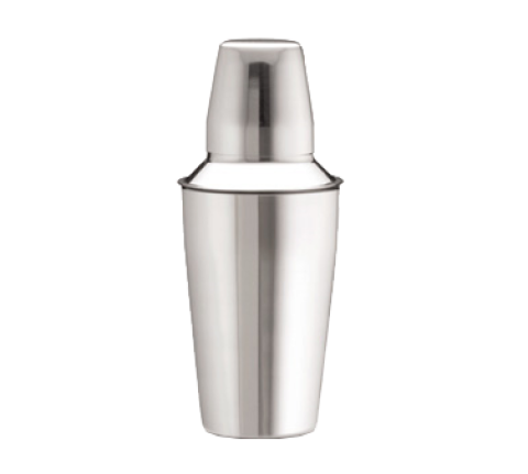 Cash & Carry Bar Shaker, 8 oz., 3 piece set includes: shaker, strainer, and 3-1/4 oz. cap, dishwasher safe, stainless steel (individually boxed) (must be purchased in multiples of 6 sets)