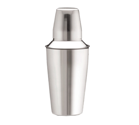 Cash & Carry Bar Shaker, 28 oz., 3 piece set includes: shaker, strainer, and 3-1/4 oz. cap, dishwasher safe, stainless steel (individually boxed) (must be purchased in multiples of 6 sets)